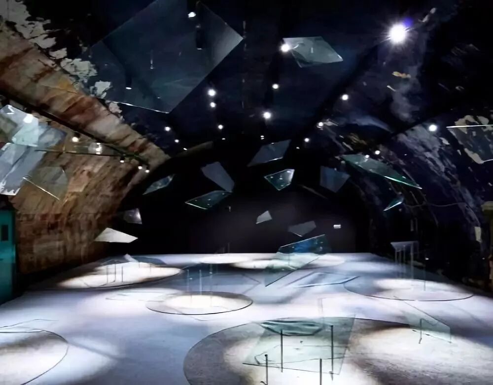 这个设计运用了透明的玻璃和无形的声音,呈现出一块玻璃碎成许多锁片,散落在空中分散的瞬间,令所有游客感觉时间停止在这一刻。分散在整个空间的35片玻璃,每一片都能发出不同的自然声音,所有声音都会通过多源音频设置传播出去。