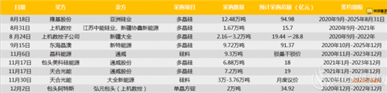 上机数控今年加码单晶硅业务,弘元新材是其全资子公司,该公司7月6日宣布在内蒙古包头建设年产8GW单晶硅拉晶生产项目,今年8月,上机数控已连续两次签署多晶硅采购合同,累计购买近4.87万吨多晶硅。