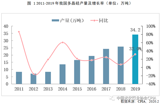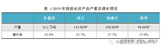 2019年,尽管在政策调整下,我国光伏应用市场有所下滑,但受益于海外市场增长,我国光伏各环节产业规模依旧保持快速增长势头。截至2019年底,我国多晶硅产能达到46.2万吨,同比增长19.4%,产量约34.2万吨,同比增长32.0%;硅片产量134.6GW,同比增长25.7%;电池片产量108.6GW,同比增长27.7%;组件产量98.6GW,同比增长17.0%。