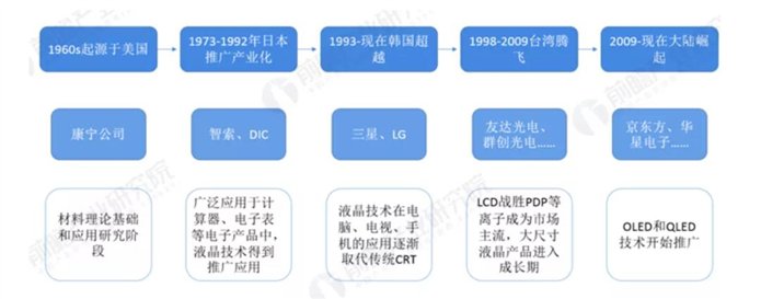 回溯面板发展历程,呈现为“美国起源-日本发展-韩国超越-中国台湾崛起-大陆发力” 的路径。目前美国和日本以及德国主要致力于行业上游原材料;而韩国、中国台湾和大陆 则主要在行业中游面板制造环节谋求发展。随着大陆高世代线的相继投产,我国面板 产能、技术水平稳步提升。