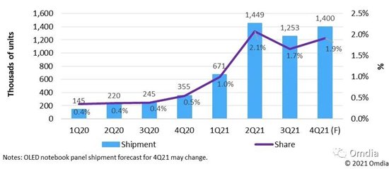 2021年OLED笔记本面板出货量可能达到470万片,同比大幅增长395%