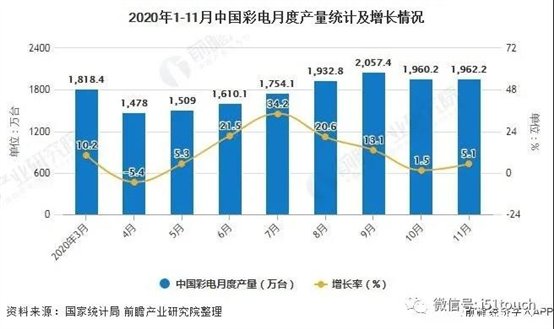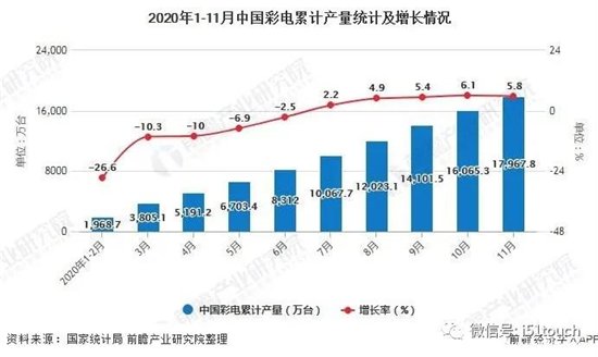 2020年1-11月中国彩电累计产量统计及增长情况