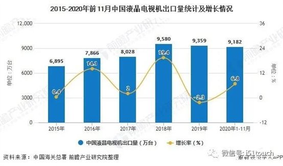 2015-2020年前11月中国液晶电视机出口量统计及增长情况