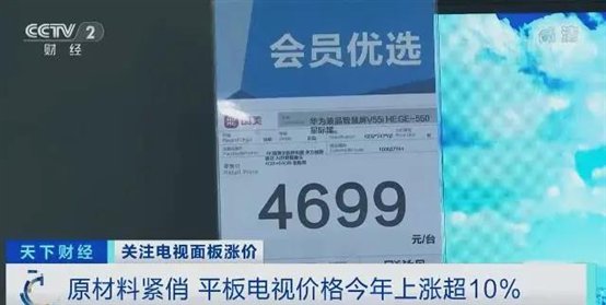 据央视财经报道,五一小长假是传统的家电消费旺季,打折促销的力度都不小,然而因原材料价格的持续上涨和显示面板供应紧张,平板电视的价格出现了普涨,所以今年五一期间,平板电视销售均价较往年都有所上涨。