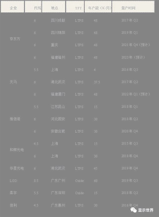 表1中国大陆地区面板产线建设情况