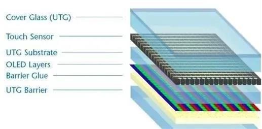 从三星 Galaxy Z Flip的屏幕开始,UTG得以运用到手机上,它可以实现折叠20万次而不会损坏,它最初是由德国Schott(肖特)提供的。