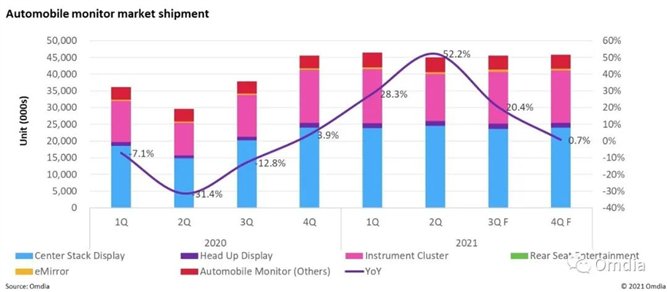 要点:今年上半年,车用显示器整体出货量为91.4百万台。自去年第三季度以来,车载显示市场出现急速的V型反弹,一直延续到今年第二季度。大勾形反转已达到最高点。