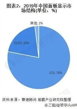目前,面板市场主流的两大产品分别为LCD和OLED ,LCD在价格、使用寿命上优于OLED,而OLED则在黑度、对比度等优于LCD。在中国,2019年LCD占据了78%左右的市场份额,而OLED则占20%左右。