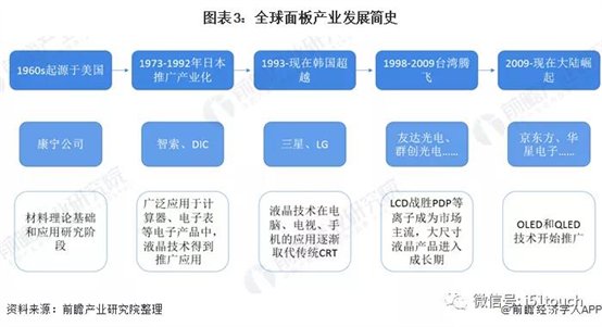 面板产业主要是指用于电视、台式电脑、笔记本和手机等电子设备的触控显示面板产业。当今时代已经是信息的时代,信息显示技术在人们社会活动和日常生活中的作用日益剧增,人类信息的获取80%来自视觉,各种信息系统终端设备与人之间的交互都需要通过信息显示来实现。面板产业已经成为了光电产业的龙头,在信息产业中仅次于微电子行业,成为了最重要的产业之一。