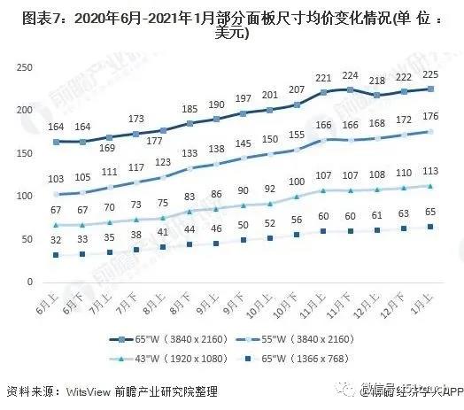 根据WitsView最新报价,55"W(3840 x 2160)面板均价已经由2020年6月的103美元涨价至2020年1月上旬176美元,短短7个月涨了73美元。