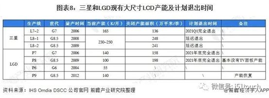 为了保证自家终端产品面板的正常供应,三星和LCD都宣布延迟关闭LCD生产线,目前LG的P7和P8产线明确延迟至2021年年底完全退出,三星的L7-2生产线计划于2020年第一季度关停,剩余的两条L8-1和L8-2产线三星目前暂未给出明确的退出时点。