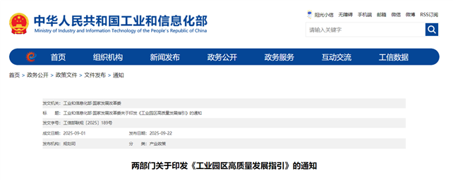 9月22日,工业和信息化部 国家发展改革委关于印发《工业园区高质量发展指引》的通知,《通知》提出推进园区绿色低碳转型:实施综合能效提升工程,加快分布式光伏、分散式风电、多元储能一体化布局,推广源网荷储一体化和多能互补;加强能源梯级利用与余热余压回收,建设智慧能源管理平台,参与绿电交易与绿证、碳足迹管理;完善充电基础设施,推动重卡等场景电动化,发展氢电耦合等新型储能;培育绿色工厂和供应链,创建绿色低碳示范园区,推动工业碳达峰碳中和。