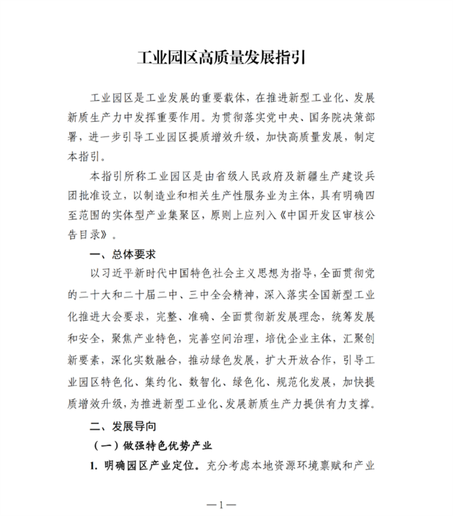 工业和信息化部 国家发展改革委关于印发《工业园区高质量发展指引》的通知