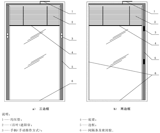 设计两种内置百叶真空中空玻璃,配置一真空玻璃在室内侧,配置二真空玻璃在室外侧,分别为: