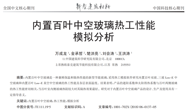 笔者针对这个问题进行了研究,并于2018年撰写文章一篇《内置百叶中空玻璃热工性能模拟分析》,发表于《新型建筑材料》,见下图。