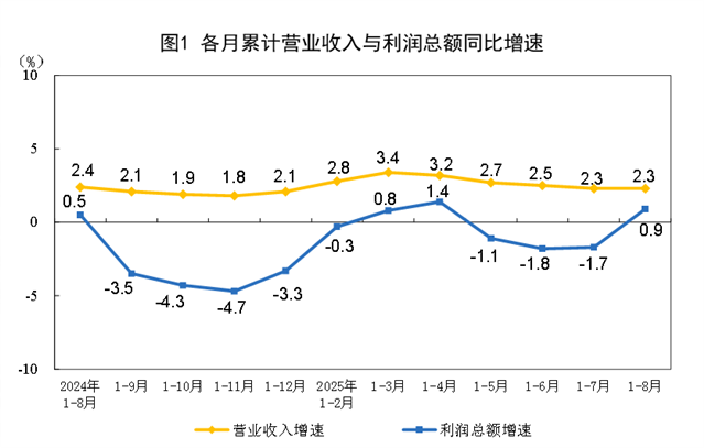 1—8月份,全国规模以上工业企业实现利润总额46929.7亿元,同比增长0.9%(按可比口径计算,详见附注二)。