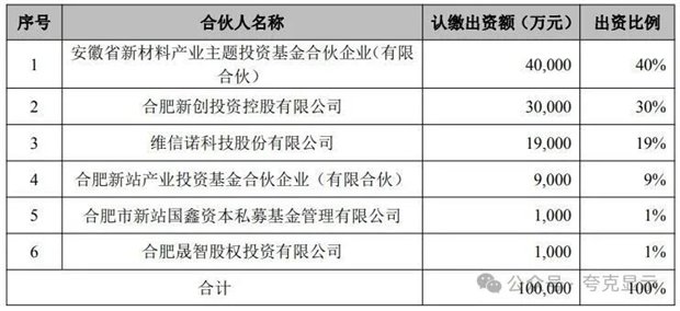 基金认缴出资总额为10亿元,投资方向为新材料领域,特别关注新型显示材料领域,并且对新材料产业链上下游的投资额不得低于认缴出资总额的百分之七十。公司作为有限合伙人以自有资金认缴出资1.9亿元,占合伙企业认缴出资比例的19%。