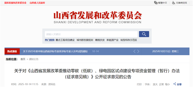 为进一步发挥省发展改革委年度部门预算对全省零碳(低碳)、绿电园区试点建设的引导作用,加快推动经济社会发展全面绿色转型,根据《政府投资条例》(国务院令第712号)、《节能降碳中央预算内投资专项管理办法》(发改环资规〔2025〕1228号)、《关于开展零碳园区建设的通知》(发改环资〔2025〕910号)、《山西省政府投资管理办法》(山西省人民政府第278号令)等相关规定,我委研究起草了《山西省发展改革委推动零碳(低碳)、绿电园区试点建设专项资金管理(暂行)办法(征求意见稿)》,现面向社会公开征求意见。