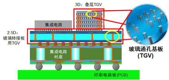 先进封装TGV示意图 来源:中国建筑材料科学研究总院