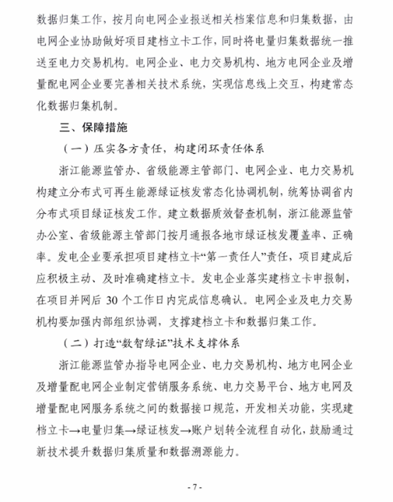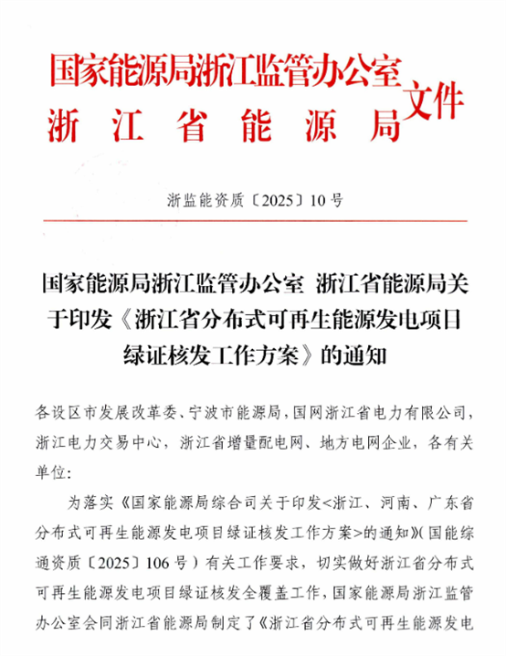 浙江将率先探索开展分布式项目(含自发自用电量)绿证核发工作,打通绿证系统数据交互路径,实现建档立卡、电量管理、绿证核发数据贯通,实现建档立卡→电量归集→绿证核发→账户划转全流程自动化,为全国推广提供可复制的浙江经验。