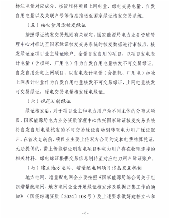 自发自用余电上网项目,以发电表计电量(含损耗、厂用电)扣除上网表计电量作为自发自用电量核发不可交易绿证,上网电量核发可交易绿证,绿电交易电量核发绿电绿证。