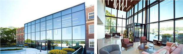 Vitro全称为 Vitro Architectural Glass(维特罗建筑玻璃公司),是北美最大的玻璃及门窗幕墙制造商,在美国境外有很多制造厂,是全球著名的玻璃门窗公司。近年来Vitro与兰迪合作向美国市场提供品牌为VacuMaxTM 的VIG产品,做了不少示范工程,位于宾夕法尼亚州伊斯顿拉斐特学院校园的 Hugel欢迎中心就是一列,它为学生、教职员工、校友和访客提供了明亮而温暖的接待空间,也是美国首个采用 Vitro的VacuMaxTM VIG的项目,见图3。在本文述评(二)中已经做过介绍。2025年11月4日Vitro与兰迪签了一项长期独家协议,将使 Vitro 能够在北美生产和销售 VIG 整窗。Vitro 计划向兰迪购买必要的设备和专利技术许可,开始国内生产,从而加速全钢化、高性能VIG 整窗的推广应用。
