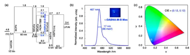 2. 研究人员基于所研发蓝色发光材料开发的PSF基OLED器件的结构和性能