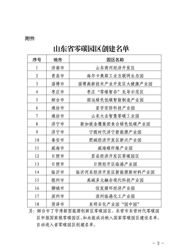 山东省能源局关于公布《山东省零碳园区创建名单》的通知